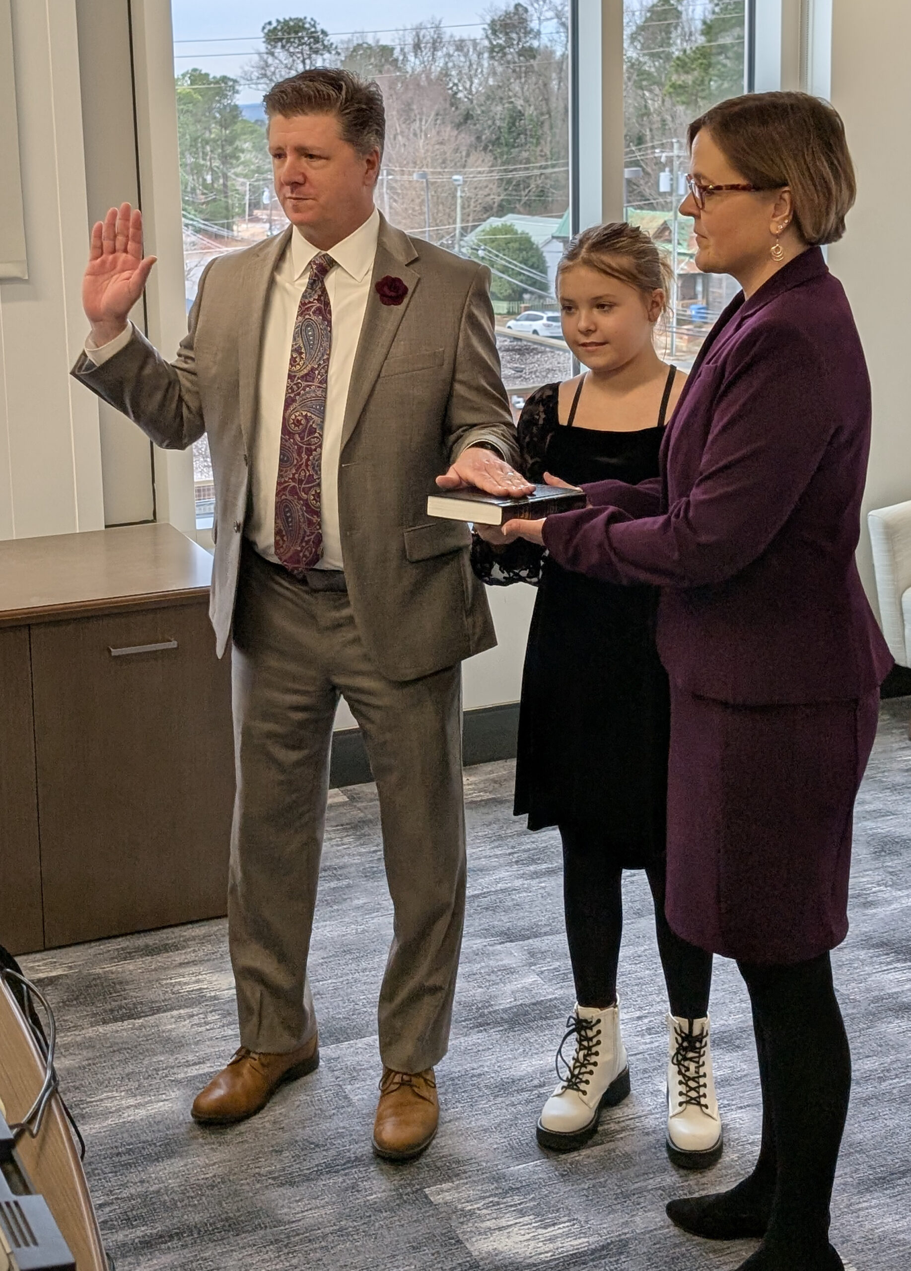 Chief Elkins took the Oath of Office on two occasions, once on January 3 in Moore County, and again on January 6 in Scotland County. His spouse and daughter stood with him for the swearing-in ceremonies.