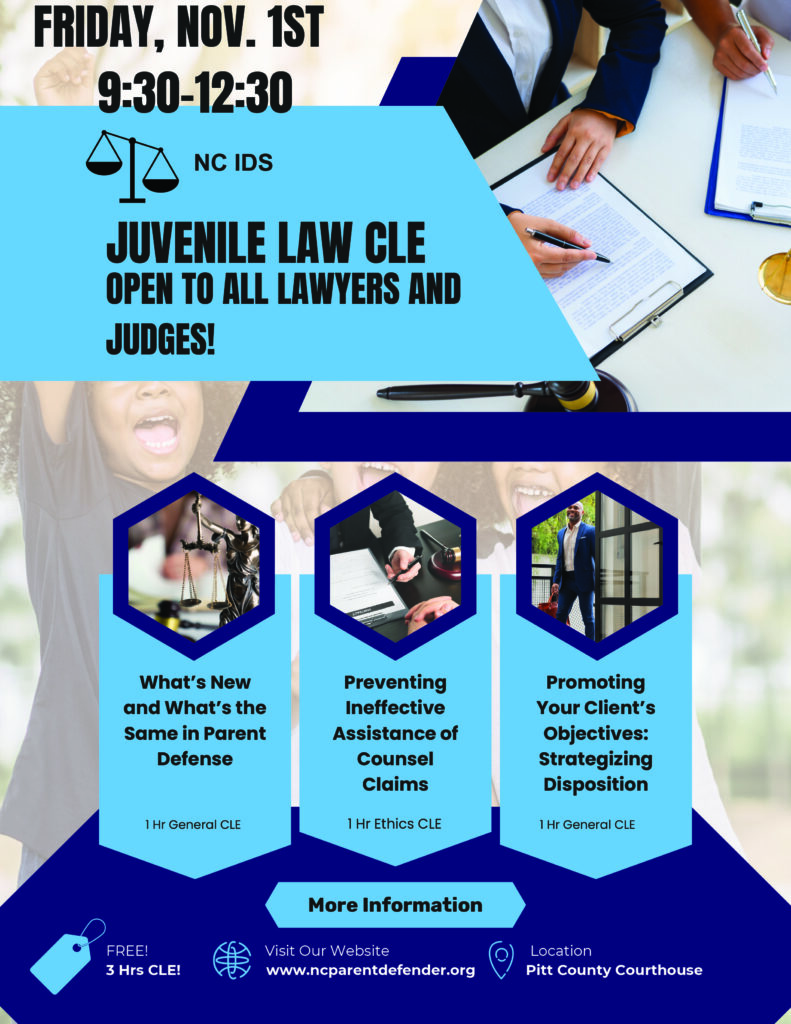 Juvenile Law CLE Opportunity – November 1 – For Parent Defenders* – At the Pitt County Courthouse